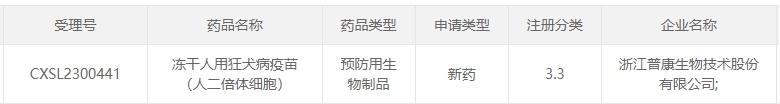 2023年06月29日,IM体育自主研发的“冻干人用狂犬病疫苗(人二倍体细胞)”正式获得国家药品监督管理局的临床试验申请受理(受理号:CXSL2300441)。